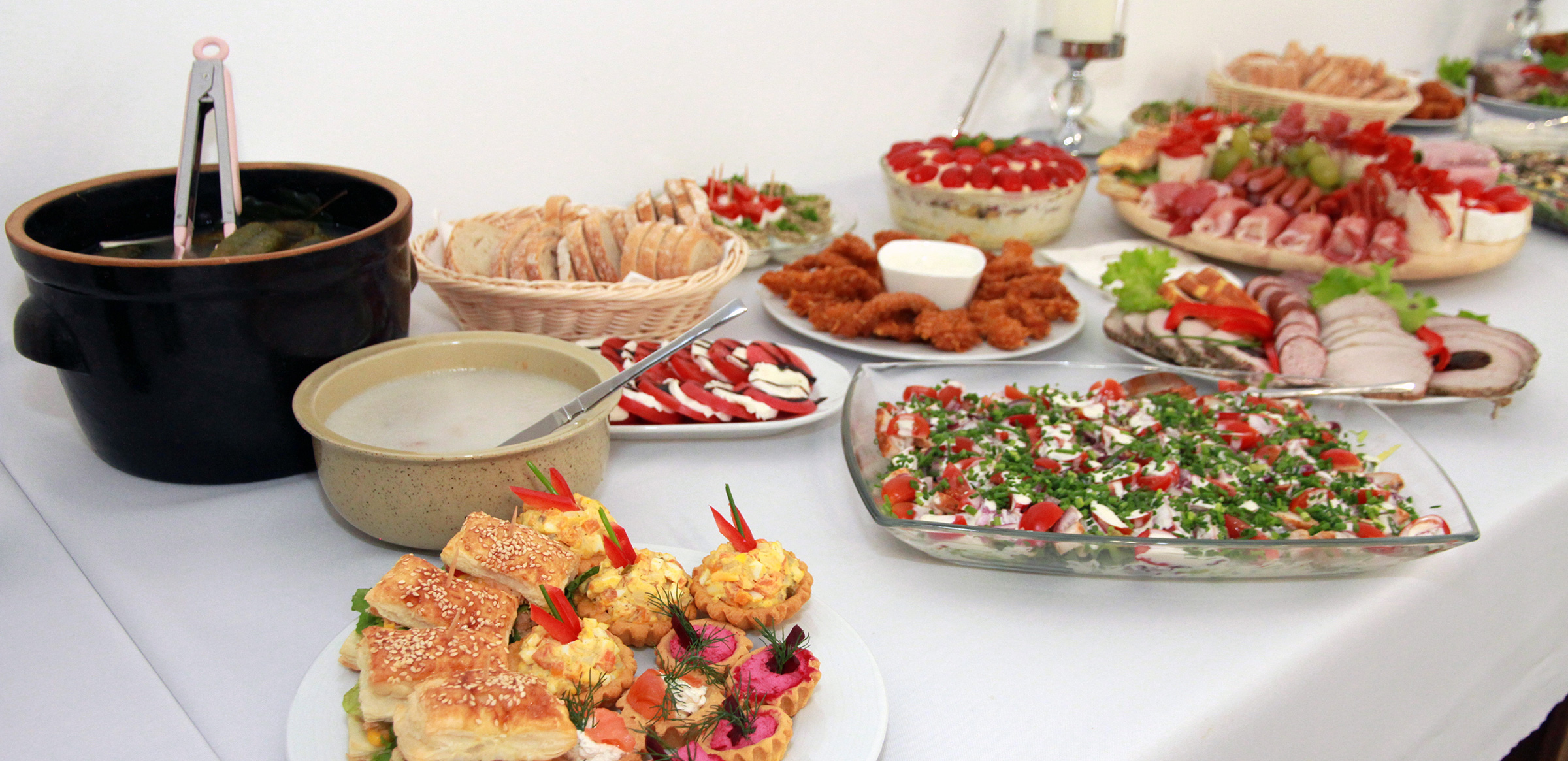 - sałatki dwa rodzaje do wyboru (pieczarkowa, gyros, warstwowa z tuńczykiem, makaronowa)